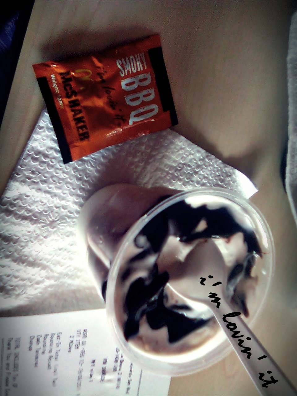 Later on after that heavy dishes, I craved for McD. Thus, we went to the nearest McD there. Tak boleh dekat mall sebab we got only one hour to kill before my sisters finish her usrah at 4.30pm. So, we hang around at McD KB for a while. There's Chinese couples at the upper side, high school-ers doing revision and discussion. Their voices didn't disturb us as we are in our world. Fufilling the missing holes of memory all this time. Talk about present and future. None of the past is touch. And you know, I am glad. Glad that we spent some time together like this. Usually we are so busy, with chores, works and many things. To meet and chat like this seems so impossible. However today is different. My heart melts.